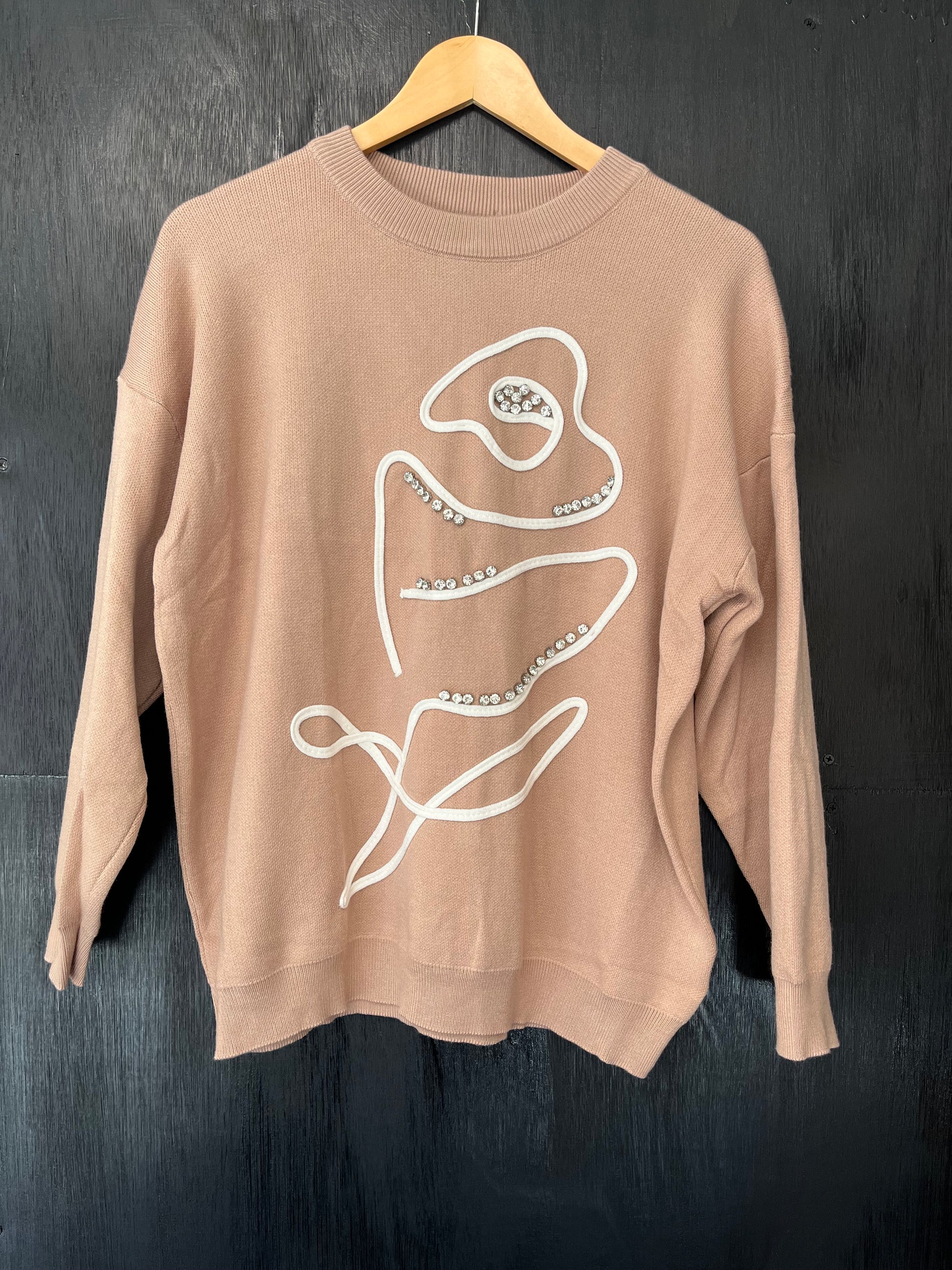 beautiful knitted jumper with floral and crystal stone embellishment