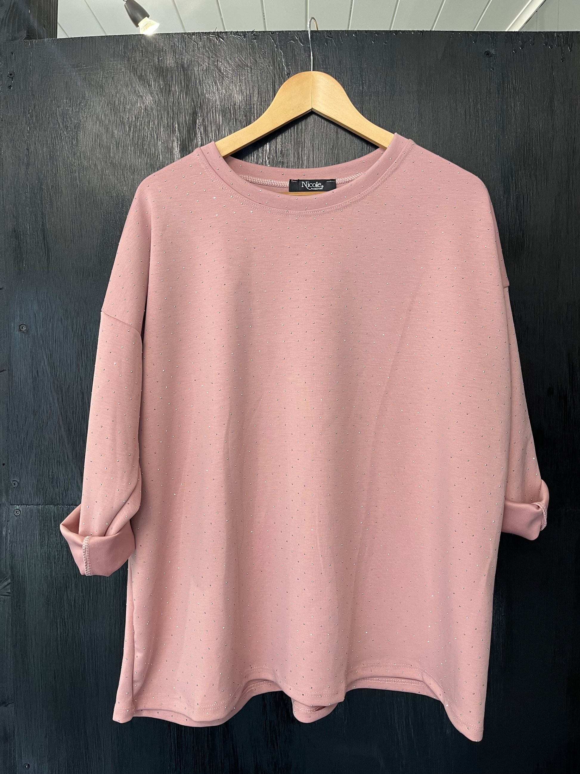 This long sleeve sweat top combines comfort with edgy style, featuring an all-over studded embellishment that adds a bold, textured look. Crafted from soft, breathable fabric, it ensures warmth and ease of movement, making it perfect for casual wear with a distinctive twist. Ideal for those seeking to elevate their everyday wardrobe with subtle yet striking details.